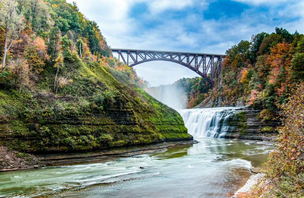 - Why Visit: The Genesee River roars through a deep gorge with three major waterfalls. The contrast of the white shale cliffs against the brilliant yellow and orange canopy is unlike anything else in the state.
